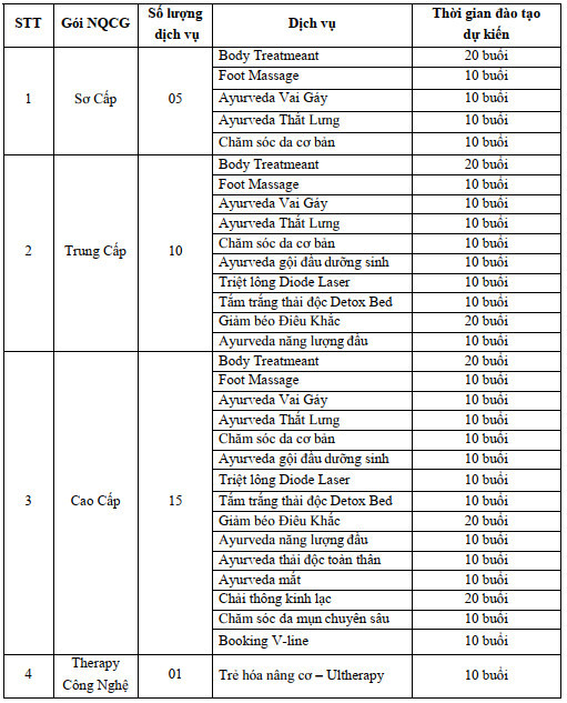 Dưới đây là một số thông tin chi tiết về các gói dịch vụ đào tạo từ Sơ cấp, Trung Cấp, Cao cấp đến Therapy công nghệ.