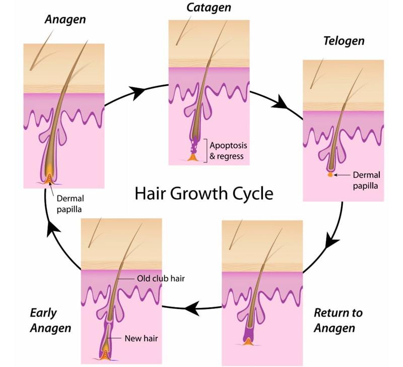 Lông chân phát triển gồm 3 giai đoạn. Trong đó gồm: giai đoạn tăng trưởng, giai toản thoái triển, nghỉ ngơi. Thông thường, nang lông chân có 80% ở giai đoạn tăng trưởng, gần 14% giai đoạn thoái triển và khoảng 2% giai đoạn nghỉ ngơi.