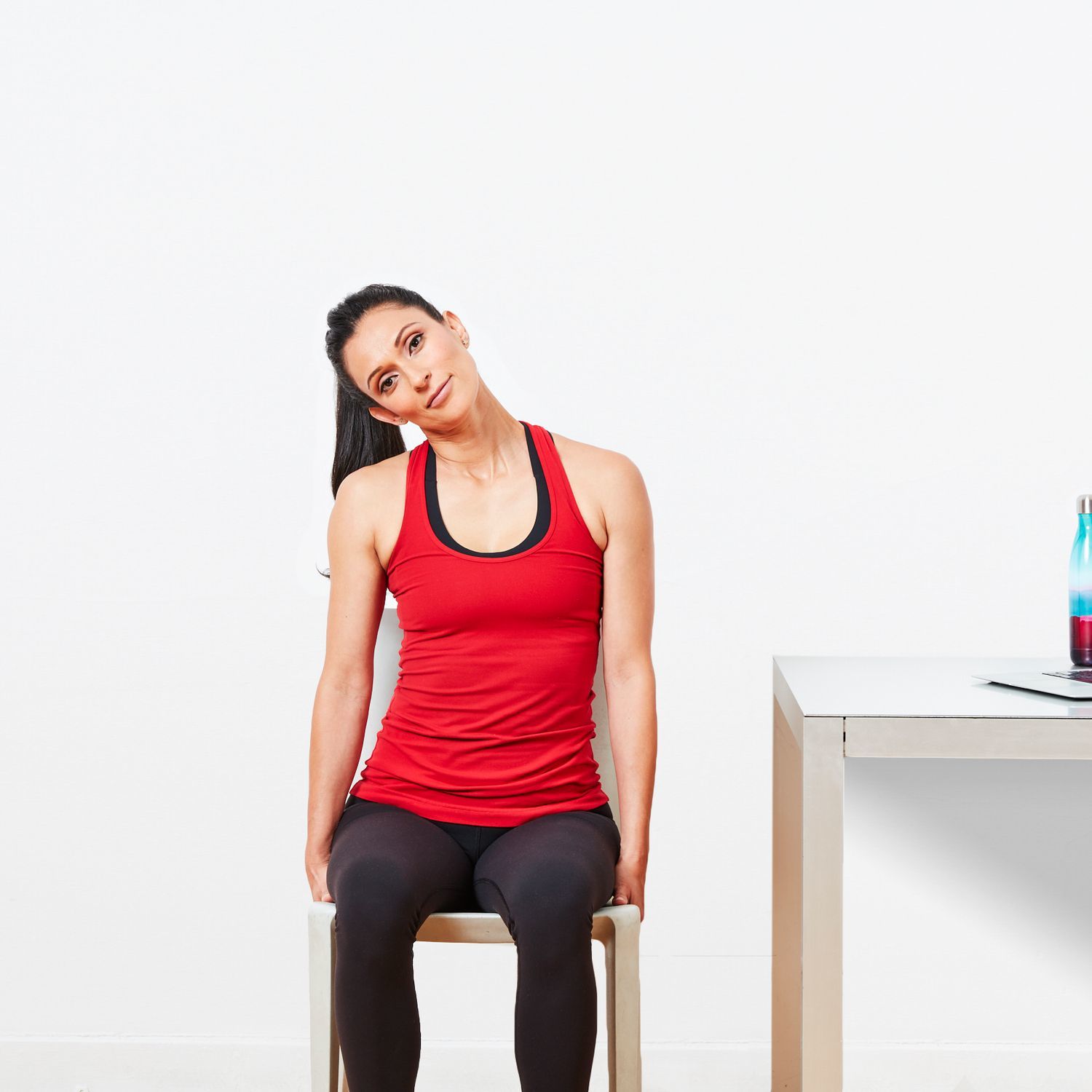 Để thực hiện động tác này bạn có thể ngồi trên ghế hoặc sàn nhà. Đầu tiên đặt bàn tay phải lên đỉnh đầu và kéo nhẹ đầu vê fphias bên phải. Lưu ý khi thực hiện tư thế lưng và vai thả lỏng, giữ thẳng, giữ tư thế khoảng 40 giây sau đó thả lỏng về vị trí ban đầu. Tương tự với bên trái, ta cũng lặp tại động tác trên.