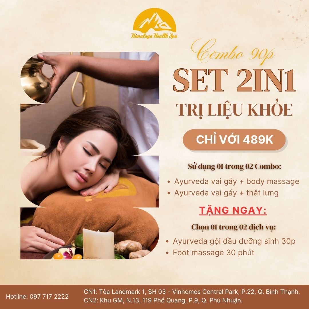 Himalaya Spa giới thiệu Set 2in1 Trị Liệu Khỏe – giải pháp chuyên sâu giúp giảm đau cổ vai gáy hiệu quả, phục hồi năng lượng và cải thiện sức khỏe toàn diện. Ưu đãi cực hấp dẫn Tháng 4 MUA 1 TẶNG 1 - đừng bỏ lỡ !