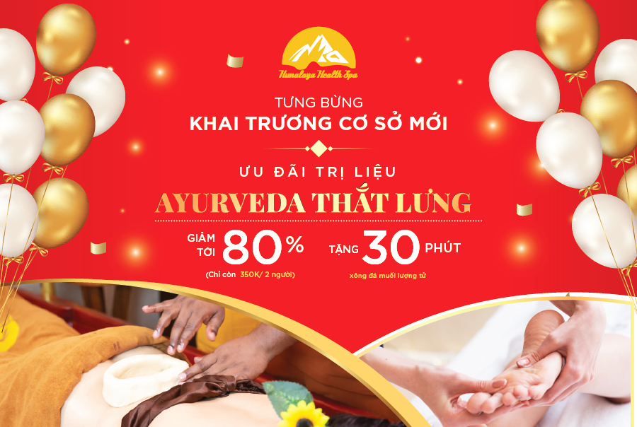 Địa chỉ: Khu GM, N.07-09, 119 Phổ Quang, P.9, Quận Phú Nhuận, Thành phố HCM) xin dành tặng quý khách ưu đãi đặc biệt hấp dẫn có 102 khi trải nghiệm dịch vụ Ayurveda Thắt lưng.
