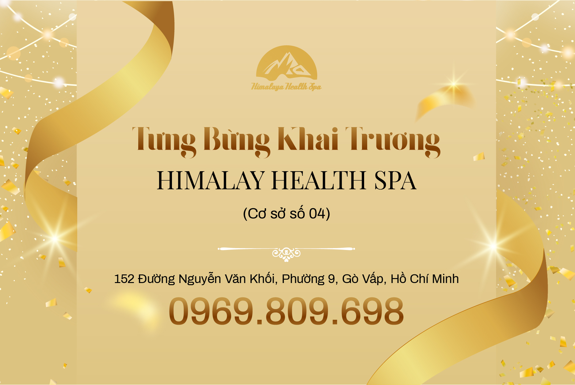 Himalaya Health Spa sẽ chính thức khai chương chi nhánh tại Gò Vấp - địa chỉ 152 Đường Nguyễn Văn Khối, Phường 9, Gò Vấp, Hồ Chí Minh (Đường Cây Trâm cũ) - Hotline: 088699998