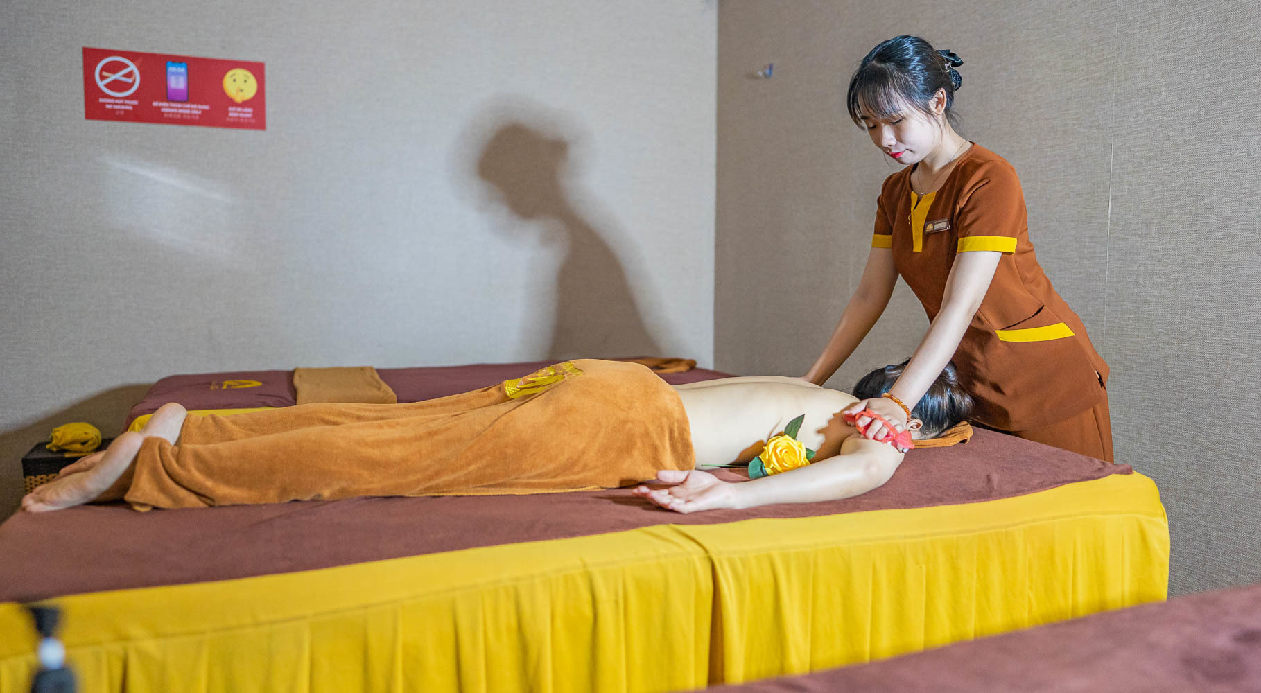 Tổng thời gian cho gói trị liệu này lên đến 90 phút. Trong đó có 30 phút xông hơi để thanh lọc cơ thể, và 60 phút là liệu trình trị liệu chuyên sâu cho vùng đau mỏi.