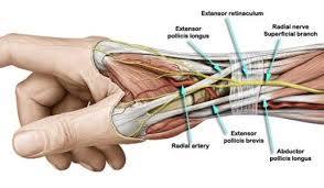 - Đầu tiên người bệnh thấy cơn đau xuất hiện đột ngột khi cử động vùng ngón cái, vùng mỏm trâm quay (phần mặt ngoài cổ tay). Trong nhiều trường hợp người bệnh còn thấy ngón tay cái hay ngón trỏ bị tê bì, khó co duỗi và xơ cứng.