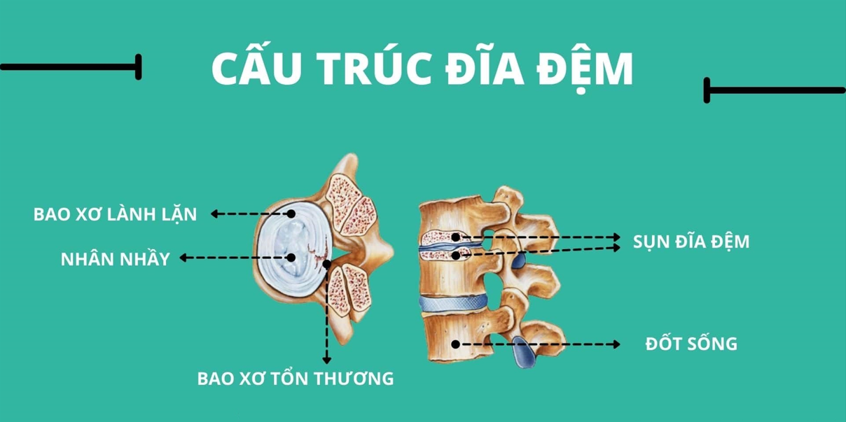 Đĩa đệm là cấu trúc sụn giữa hai đốt sống, có chức năng giảm ma sát và tạo nên chuyển động giữa các khớp đốt sống, làm giảm lực tác động lên xương đốt sống.