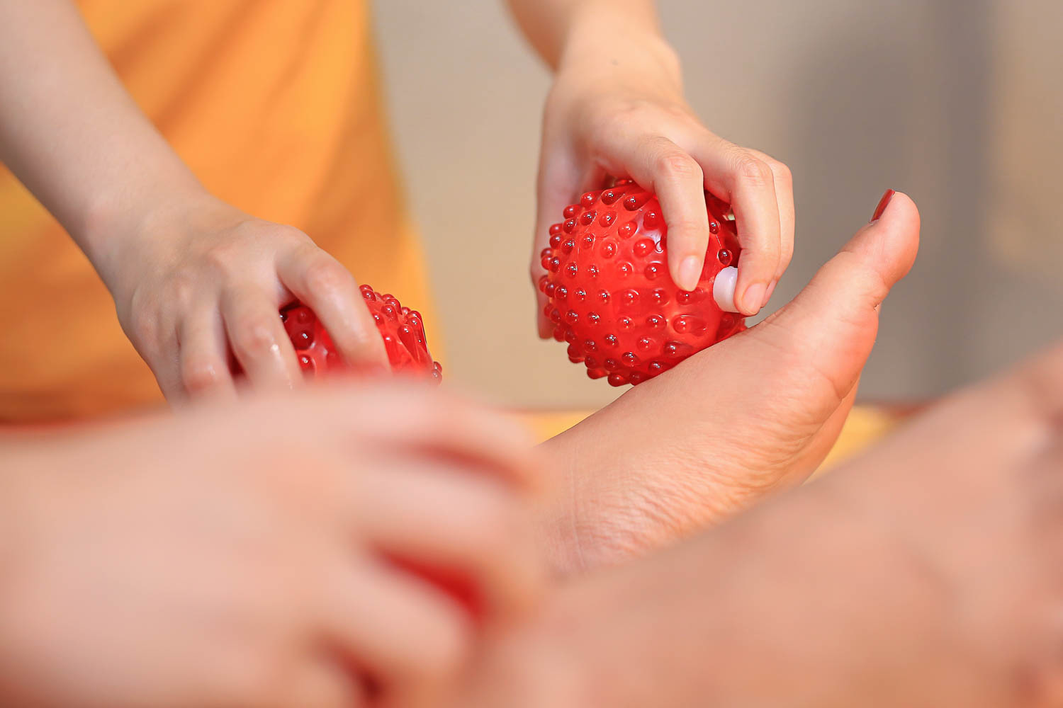 ❥ Bước 07: Sử dụng lược chải chuyên dụng chải lưu thông khí huyết vùng chân, điều tiết công năng gan thận.