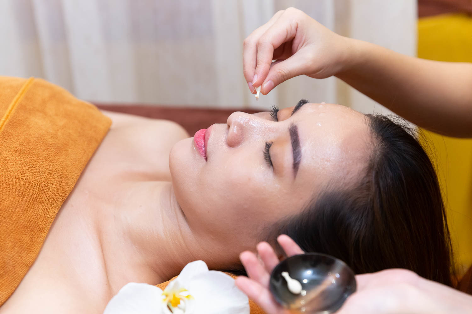 ❥ Bước 11: Đắp mặt nạ huyết yến, dưỡng ẩm giúp da căng bóng, mịn màng.