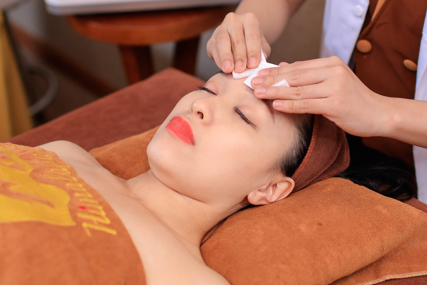 ❥ Bước 07: Đắp khăn nóng thảo dược kết hợp nước hoa hồng giúp cân bằng độ ẩm.