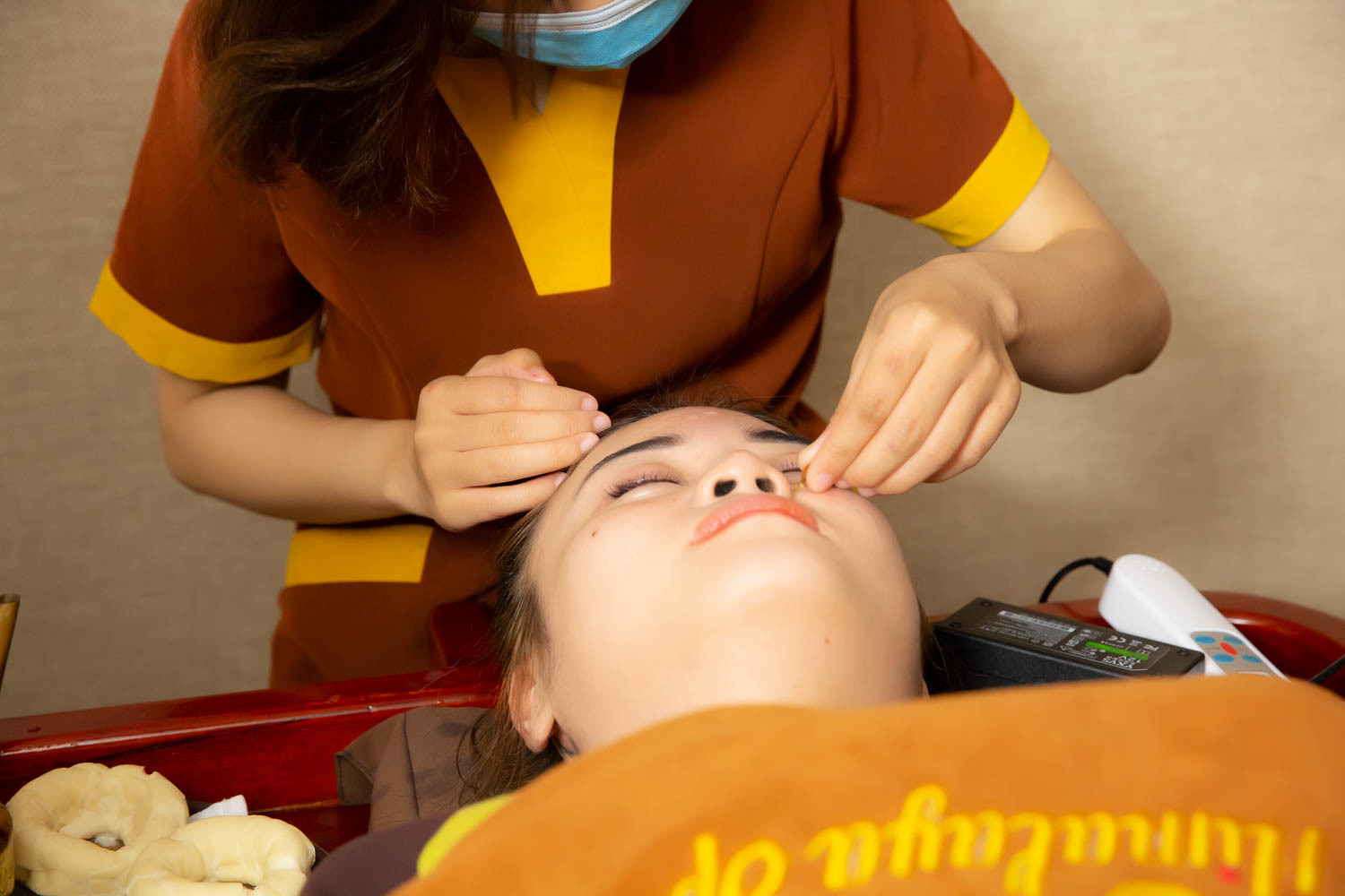 Bước 13: Đắp khăn thảo dược lạnh kết hợp ấn huyệt giúp se khít lỗ chân lông.