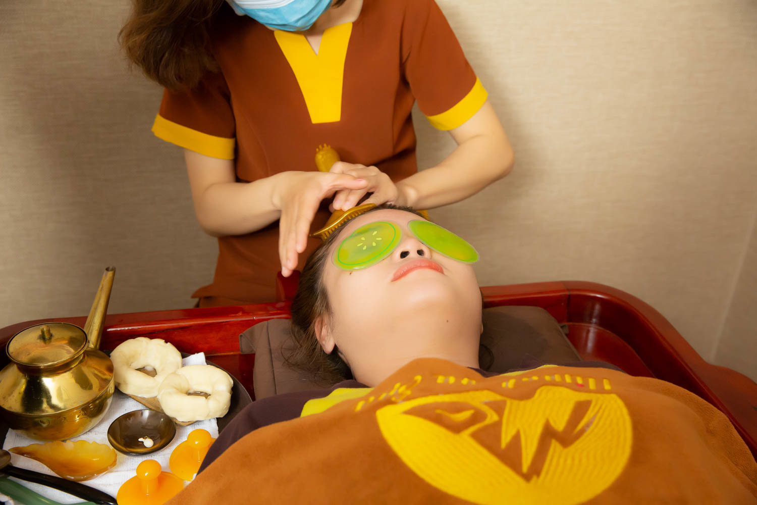 ❥ Bước 13: Đắp khăn thảo dược lạnh kết hợp ấn huyệt giúp se khít lỗ chân lông.
